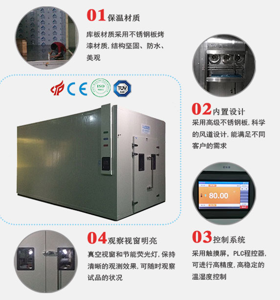 步入式恒溫恒濕試驗箱為業(yè)界零件、半成品、成品做溫濕度環(huán)境測試,如:計算機終端機、汽車零部件。恒溫恒濕室主要由控制面板、配電盤、保濕庫板、送風機、加熱器、加濕器、冷凍機組合而成。步入式恒溫恒濕試驗箱根據(jù)用戶要求并參照JB/T4283-91;GB/T14294-93設計、制造。還可根據(jù)客戶要求定制