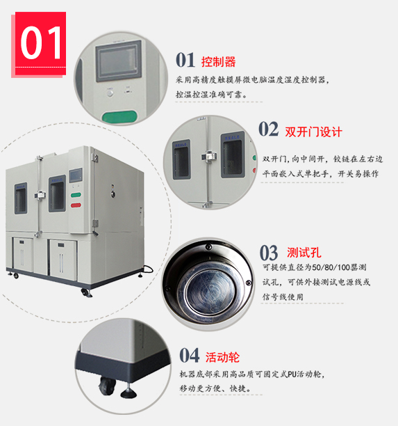 | 標(biāo)準(zhǔn)配件Standard Accessories | 三層真空層觀察窗1個(gè)、Φ5cm測試孔一個(gè)、試驗(yàn)架2套、箱內(nèi)照明燈1個(gè)、指示燈、移動(dòng)工作輪4個(gè)、水箱,電源線2米、通訊界面 one observation window , one test hole(Φ5cm),Two sets of test racks,one floodlight,one indicator light, four moving wheels,one humidifying tank,2 meters of power cord,communication interface |