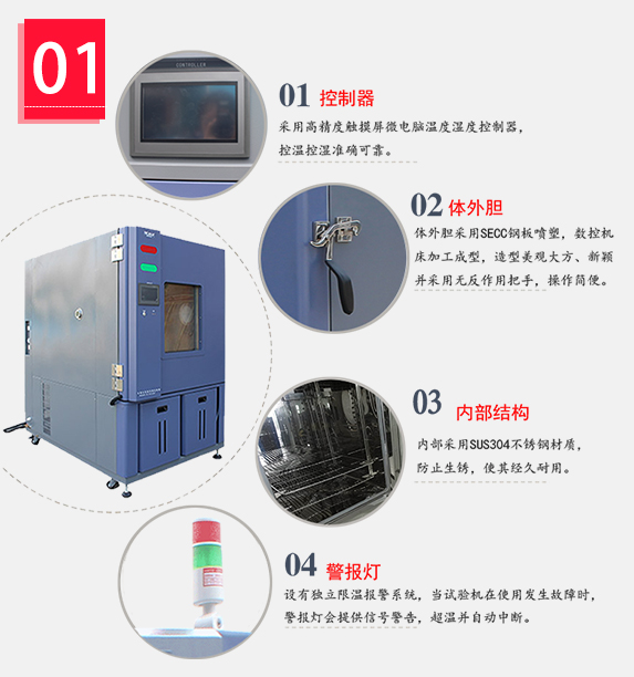| 標準配件Standard Accessories | 三層真空層觀察窗1個、Φ5cm測試孔一個、試驗架2套、箱內照明燈1個、指示燈、移動工作輪4個、加濕水箱1個,電源線2米、通訊界面 one observation window , one test hole(Φ5cm),Two sets of test racks,one floodlight,one indicator light, four moving wheels,one humidifying tank,2 meters of power cord,communication interface |