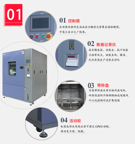 | 標準配件Standard Accessories | 三層真空層觀察窗1個、Φ5cm測試孔一個、試驗架2套、箱內照明燈1個、指示燈、移動工作輪4個、加濕水箱1個,電源線2米、通訊界面 one observation window , one test hole(Φ5cm),Two sets of test racks,one floodlight,one indicator light, four moving wheels,one humidifying tank,2 meters of power cord,communication interface |