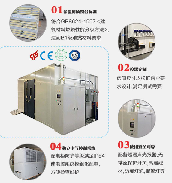 步入式高低溫?zé)龣C(jī)室是針對(duì)高性能電子產(chǎn)品(如:計(jì)算機(jī)整機(jī),顯示器,終端機(jī),車用電子產(chǎn)品,電源供應(yīng)器,主機(jī)板、監(jiān)視器、交換式充電器等)仿真出一種高溫、惡劣環(huán)境測(cè)試的設(shè)備,是提高產(chǎn)品穩(wěn)定性、可靠性的重要實(shí)驗(yàn)設(shè)備、是各生產(chǎn)企業(yè)提高產(chǎn)品質(zhì)量和競(jìng)爭(zhēng)性的重要生產(chǎn)流程。該設(shè)備廣泛應(yīng)用于電源電子、電腦、通訊、生物制藥等領(lǐng)域。根據(jù)不同的要求配置主體系統(tǒng)、主電系統(tǒng)、控制系統(tǒng)、加熱系統(tǒng)、溫度控制系統(tǒng)、風(fēng)力恒溫系統(tǒng)、時(shí)間控制系統(tǒng)、測(cè)試負(fù)載等,通過此測(cè)試程序可檢杳出不良品或不良件。可按客戶需求定制