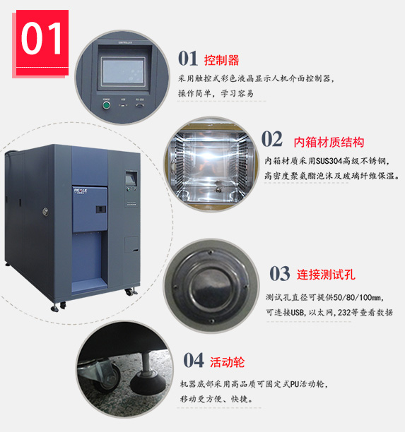 核心部件采用進口品牌,提高品質和使用壽命,冷熱沖擊溫度恢復時間在5分鐘內,可符合MTL,IEC,JIS,GJB等規范