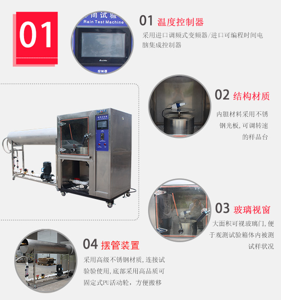淋雨試驗箱適用于外部照明和信號裝置及汽車燈具外殼防護,能夠提供逼真的模擬電子產品及其元器件在運輸和使用期間可能受到的淋水和噴淋試驗等各種環境。以達到檢測各種產品的防水性能。淋雨試驗箱主要適用于電子電工,航空航天,軍工等科研單位外部照明、信號裝置及汽車燈具外殼防護試驗檢測
