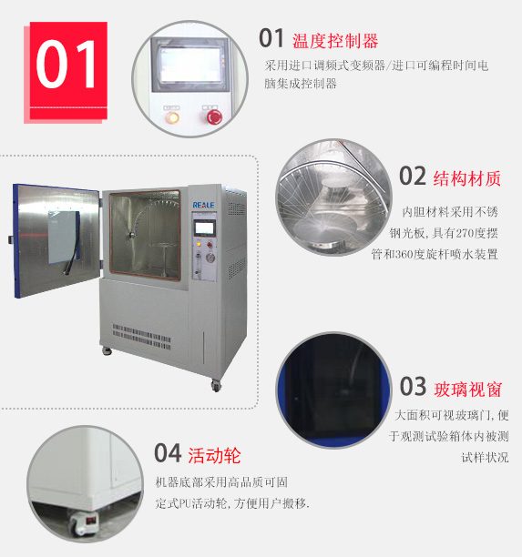 防水試驗裝置主要適用于電子電工,航空航天,軍工等科研單位外部照明、信號裝置及汽車燈具外殼防護試驗檢測。防水試驗裝置適用于外部照明和信號裝置及汽車燈具外殼防護,能夠提供逼真的模擬電子產品及其元器件在運輸和使用期間可能受到的淋水和噴淋試驗等各種環境。以達到檢測各種產品的防水性能。