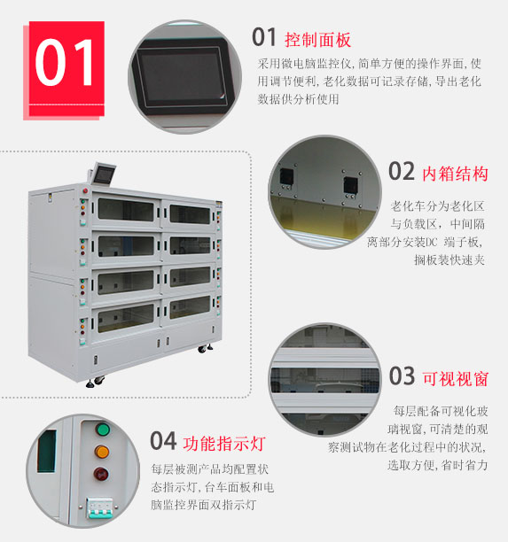 老化烘箱設備是電子產品專用老化是對半成品、成品類借著BURN-IN(預燒)來移除早期失效不合格之零組件產品,而使產品進入市場后可靠性相對提高,保障產品確實沒問題。適用于計算機、服務器、MONITOR、電源供應器、電子交換機‥等相關電子通信產業為主。 可依顧客需要之尺寸而設計及往后擴廠遷移拆裝方便。 待測物專用電源與機臺安全保護系統同步連控。 采用HEATING BOX及防爆形加熱器之設計,先進伺服比例積分微分控制,安全、穩定、可靠。多重式之超溫外接式抽氣安全保護裝置及壓力防爆孔設計, 采接觸式微電腦控制器及時間計時裝置,讓實驗更方便準確