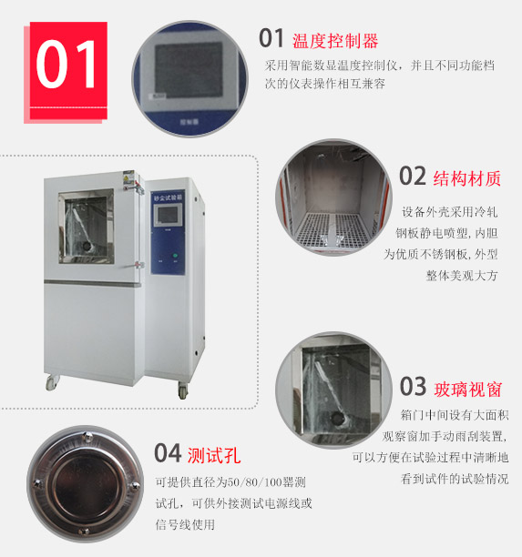 粉塵試驗箱適用于檢測產品的外殼密封性能,主要用于外殼防護等級標準中規定的IP5X和IP6X兩個等級的試驗。主要是模擬沙塵暴天氣對鎖具、汽摩零部件、密封件、電力儀表等產品所造成的破壞,粉塵試驗箱適用于電工電子產品、汽車摩托車零部件、密封件在砂塵環境中防止砂塵進入密封件和外殼的試驗。以檢驗電子電工產品、汽車、摩托車零部件、密封件在砂塵環境中的使用、貯存、運輸的性能