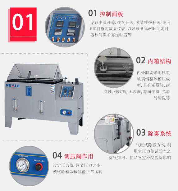 水密封形式使鹽霧不致外溢,夾套風道加熱,使工作室升溫快,溫度分布均勻